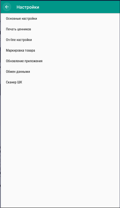 В мобильном приложении необходимо настроить параметры доступа и обмена данными, а также специфические функции. Все остальные настройки конфигурации загружаются при запуске обмена с товароучетной системой.