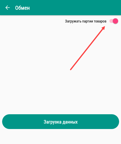 - При загрузке данных в ТСД включить тумблер Загружать партии товаров