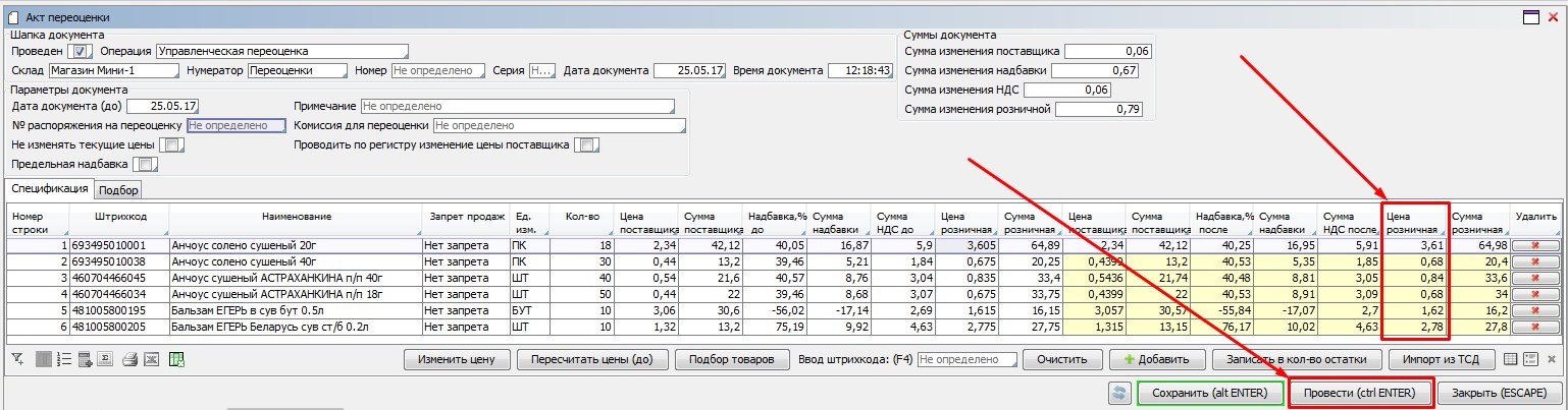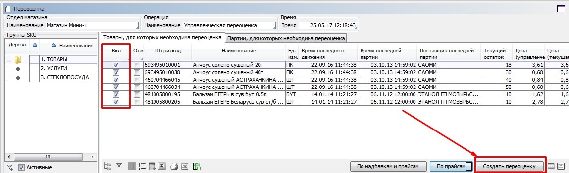 *Примечание: Для формирования переоценки обязательно должен действовать Розничный прайс сформированный на форме Прайсы модуля Цены.