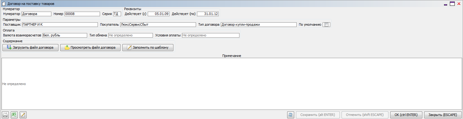 - Загрузить файл договора: позволяет выбрать файл печатной формы для данного договора.
